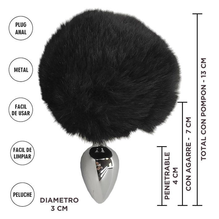 Plug anal negro con cola de conejo 🐇