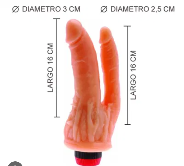 Potente vibrador y estimulador para doble penetración! Tiene múltiples intensidades de vibración regulables desde su base. Realizado en silicona, flexible y con detalles de texturas, para intensificar la estimulación. Ambos penes miden 16 cm de largo, el pene vaginal tiene un grosor de 3 cm y el anal 2,5 cm.