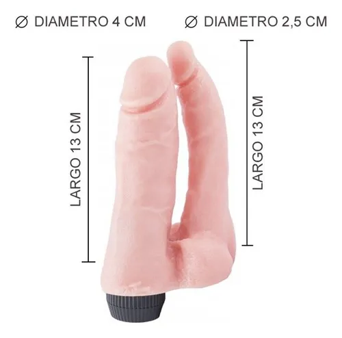 Doble punta de 13cm: una un poco mas fina para la penetracion anal (2,5cm) y otra un poco más gruesa (4cm). El poderoso vibrador interno desparrama pulsos de placer para una placentera estimulacion!!